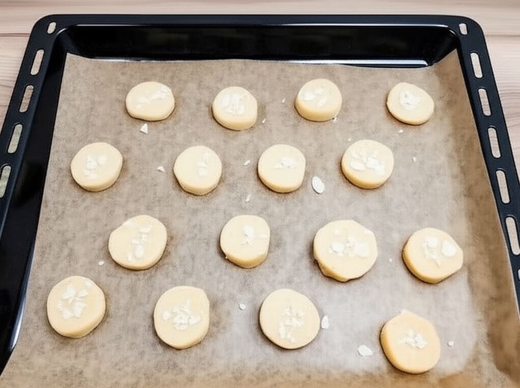 Prostota bywa najsmaczniejsza! Nasze kruche ciasteczka to kwintesencja domowego wypieku – delikatne, maślane i rozpływające się w ustach. Każdy kęs tych złocistych przysmaków przenosi nas do beztroskich chwil dzieciństwa, gdy zapach świeżo upieczonych ciastek wypełniał cały dom. Sekret ich nieodpartego uroku tkwi w idealnych proporcjach składników i łatwości przygotowania. Wystarczy szybko zagnieść ciasto, uformować wałki, pokroić na krążki, posypać płatkami migdałowymi i upiec do złocistego koloru. Po 15 minutach pieczenia Twój dom wypełni się cudownym aromatem, któremu nikt się nie oprze!