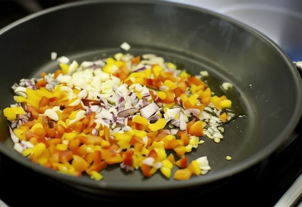 Posiekane warzywa zrumień na łyżce oleju, aż uzyskają złocisty kolor. Umieść w misce.