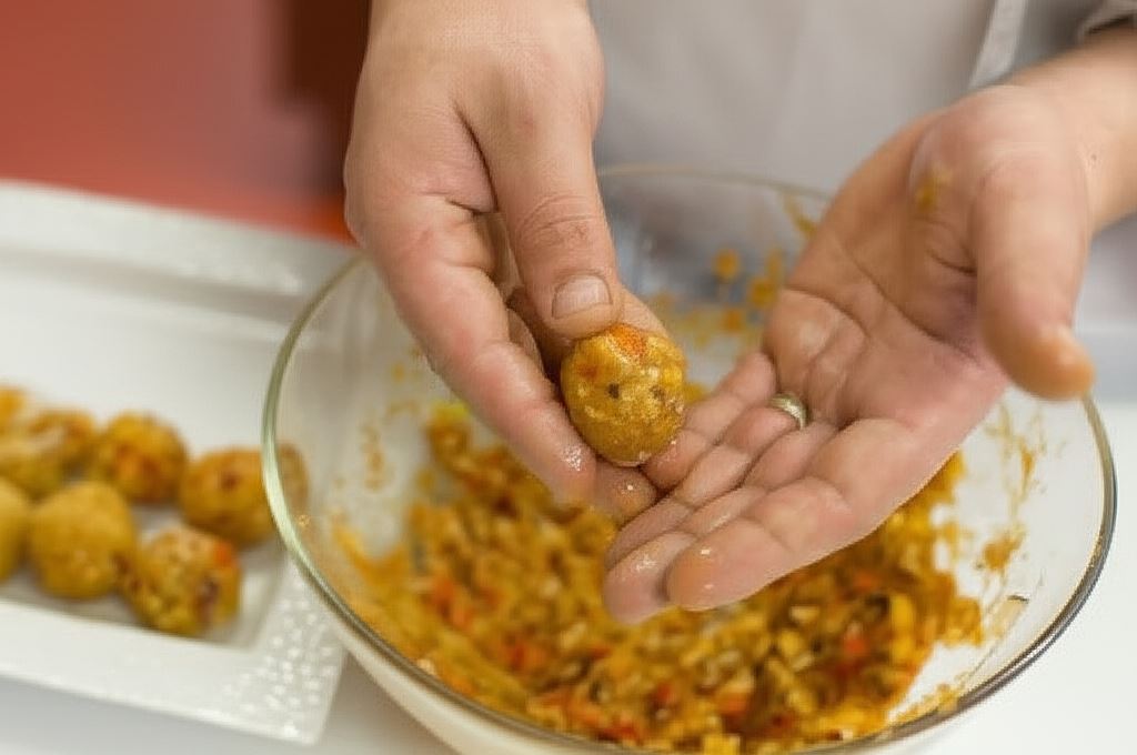 Ryż używany do przygotowania kulek najlepiej sprawdza się, gdy jest kleisty i okrągły, podobnie jak ten używany do sushi. Taki rodzaj ryżu zapewnia odpowiednią konsystencję, dzięki której kulki nie rozpadają się podczas smażenia. Jeśli masa wydaje się zbyt rzadka, wystarczy dodać nieco bułki tartej, aby uzyskać idealną konsystencję.