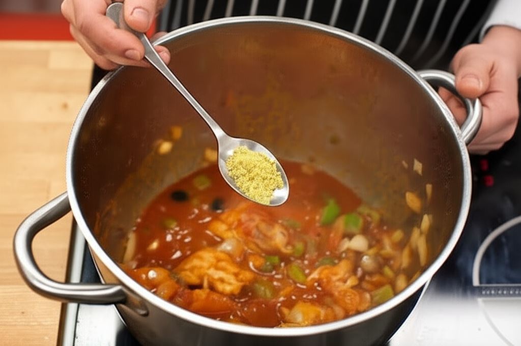 Na zakończenie całość przypraw kostką bulionową Knorr.