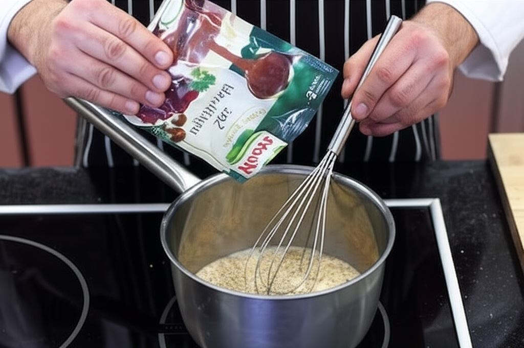 Połącz mleko z Sosem myśliwskim Knorr i doprowadź do wrzenia.