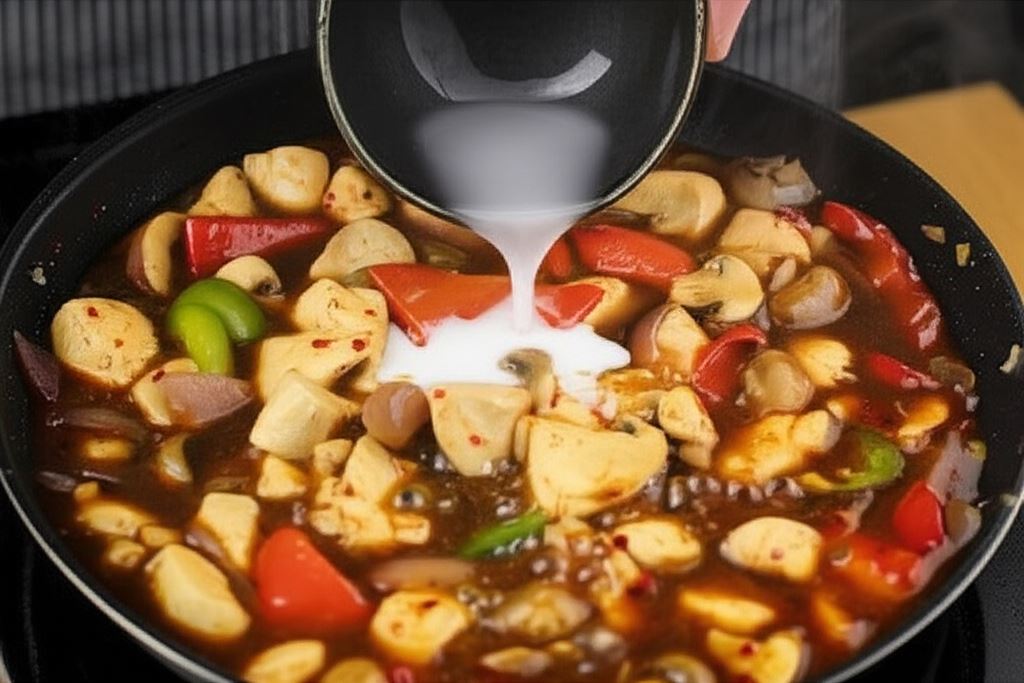 Możesz modyfikować poziom ostrości dania, dostosowując ilość płatków chili z wędzoną papryką. Jeśli lubisz eksperymentować, spróbuj dodać inne warzywa, np. cukinię, marchewkę lub pędy bambusa. Kurczaka możesz również zastąpić tofu, aby stworzyć wegetariańską wersję tej potrawy. Dla dodatkowego aromatu posyp danie świeżą kolendrą zamiast szczypiorku.