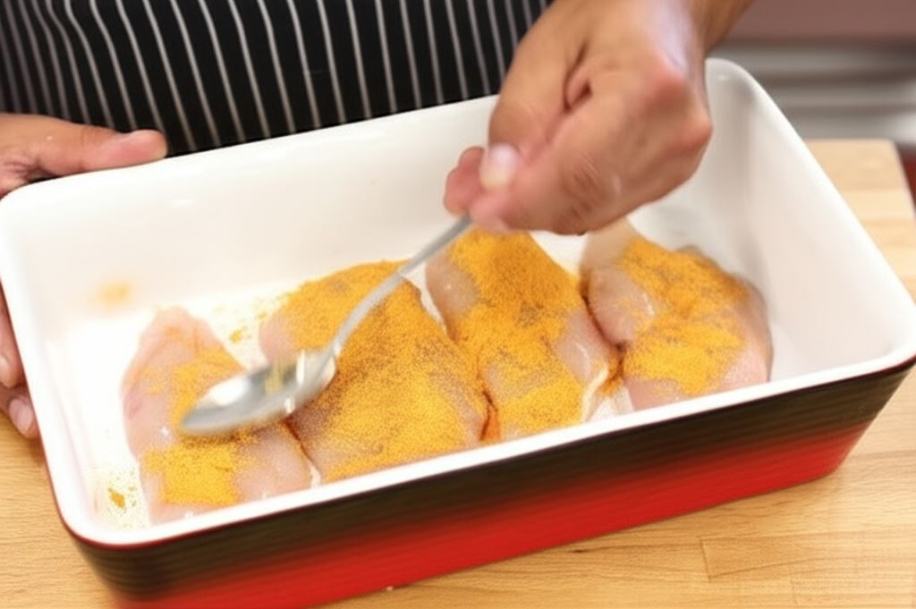 Kurczaka posmaruj przyprawą Knorr i umieść w naczyniu żaroodpornym.