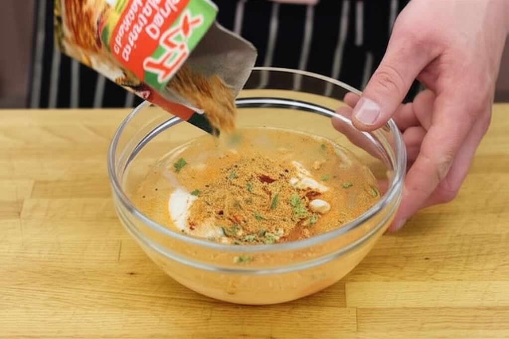 Przystąp do sosu – przygotuj niewielką miseczkę, w której połączysz jego komponenty. Wlej do niej 150 mililitrów jogurtu naturalnego i 250 mililitrów ciepłej wody – ilość odpowiadającą standardowej szklance. Wsyp do miski zawartość opakowania Fix Danie orientalne z kurczakiem Knorr i zamieszaj starannie, aby wszystkie składniki sosu się zjednoczyły.
