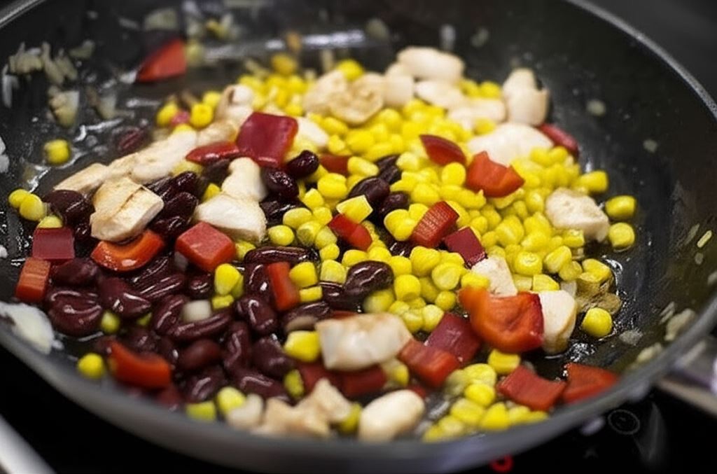 Soczyste kawałki kurczaka, czerwona fasola, kukurydza i papryka tworzą harmonijne połączenie, które zachwyca nie tylko smakiem, ale i wyglądem. Wystarczy kilka prostych kroków, by stworzyć danie pełne słonecznych aromatów, które podane z sypkim ryżem stanie się kompletnym posiłkiem dla całej rodziny.