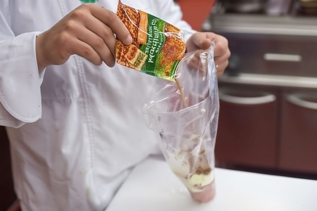 Potnij piersi kurczaka na duże kawałki. Potem umieść je w woreczku, dodaj mąkę kukurydzianą, przyprawę do kurczaka Knorr i dokładnie zawiąż. Potrząsaj woreczkiem tak, aby mąka i przyprawy pokryły równomiernie całą powierzchnię mięsa.