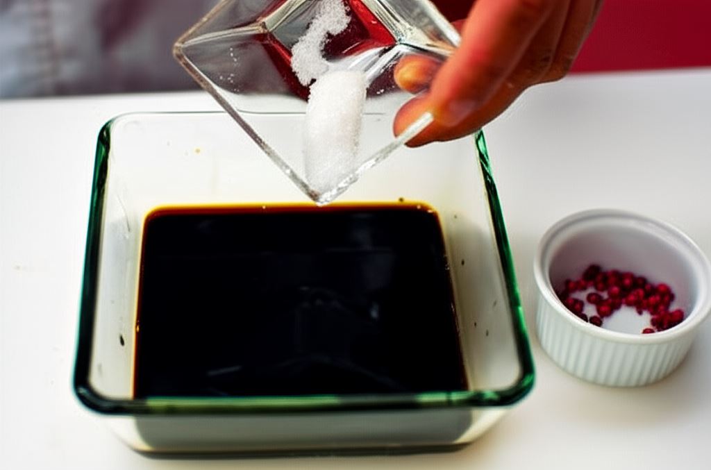 Połącz wszystkie pozostałe składniki z wodą, octem, cukrem i sosem sojowym.