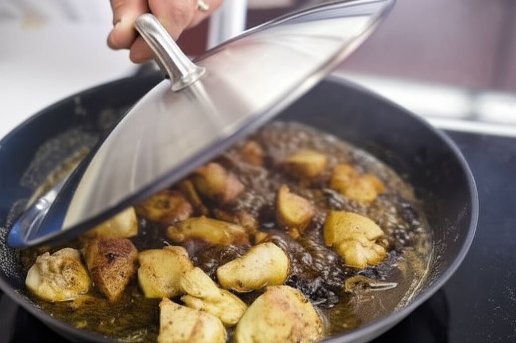 Mieszaninę wlej do kurczaka, nakryj i pozwól jej się gotować jeszcze przez 3 minuty.