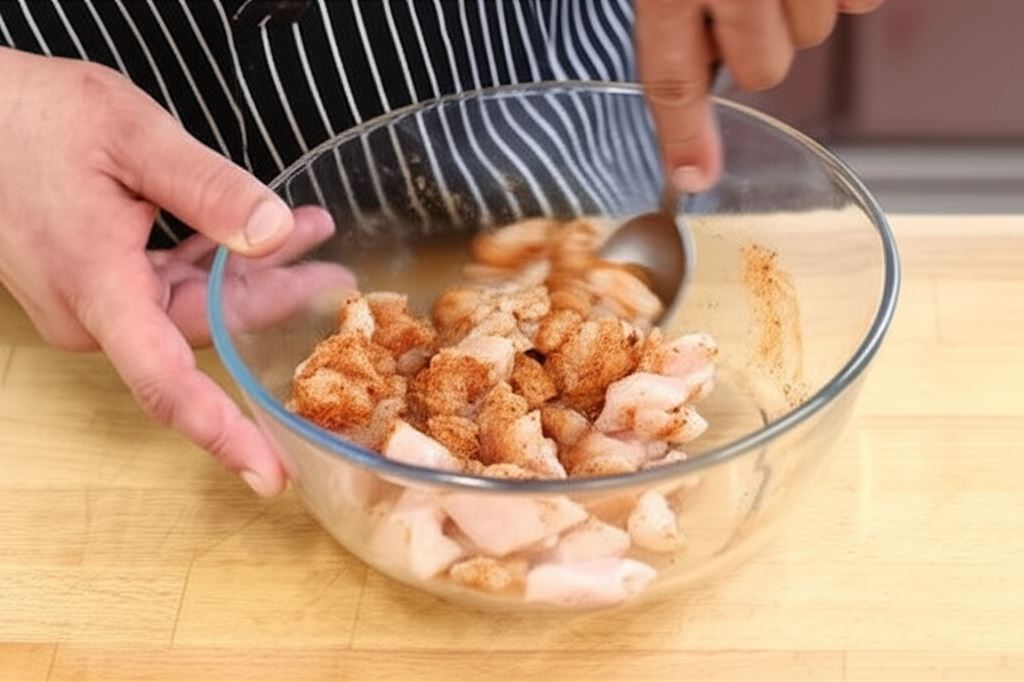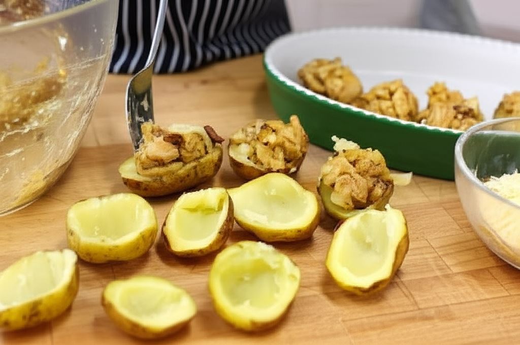 Sekret wyjątkowego smaku tego dania tkwi w odpowiednim przyprawieniu kurczaka przed smażeniem. Dzięki temu mięso zachowuje niezwykłą soczystość i nabiera delikatnie ziołowego aromatu. Warto również pamiętać, by nie przesmażyć kurczaka na patelni – powinien pozostać lekko surowy w środku, gdyż dokończy się piec w ziemniakach.