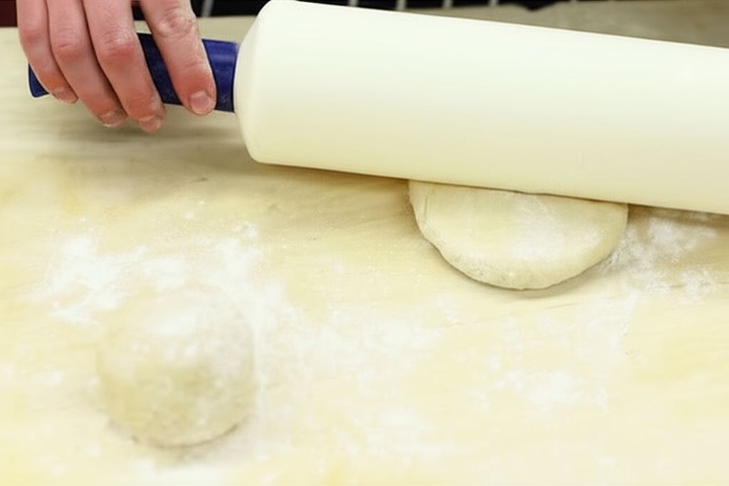 Podziel ciasto na dwie części i rozwałkuj je na placki.