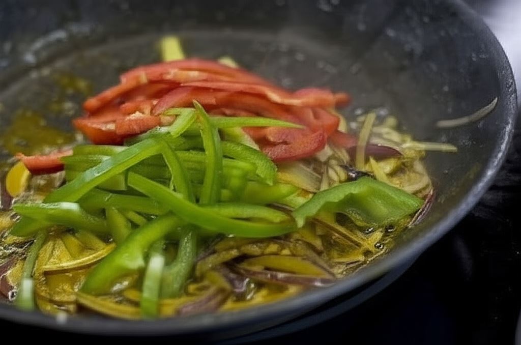 Aromatyczny kurczak w curry z makaronem to prawdziwa uczta dla zmysłów. To danie, w którym delikatne kawałki kurczaka spotykają się z pikantnym curry, tworząc harmonijną kompozycję smaków Dalekiego Wschodu. Makaron ryżowy, kolorowe papryki i orientalne przyprawy sprawiają, że potrawa zachwyca nie tylko smakiem, ale i wyglądem.