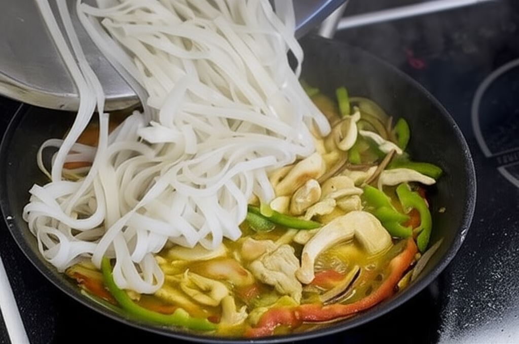 Jeśli nie przepadasz za makaronem ryżowym, możesz użyć klasycznego makaronu w formie wstążek. Danie możesz wzbogacić o groszek cukrowy, kiełki fasoli lub posiekane orzechy nerkowca dla dodatkowej chrupkości. Miłośnicy ostrzejszych smaków mogą dodać świeżą papryczkę chili lub płatki chili.