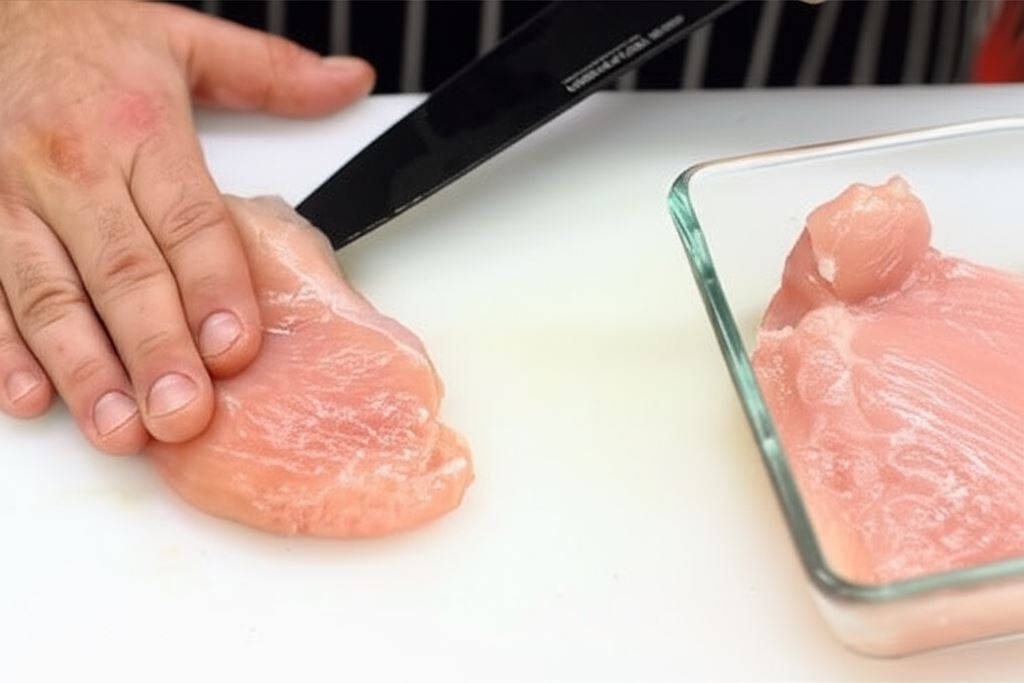 Ostrym nożem wykonaj nacięcie wzdłuż mięsa, aby utworzyć kieszonkę.