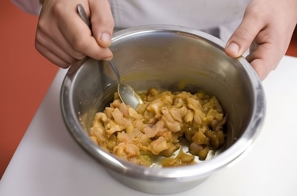 Połącz kurczaka pokrojonego w drobną kostkę z marynatą.