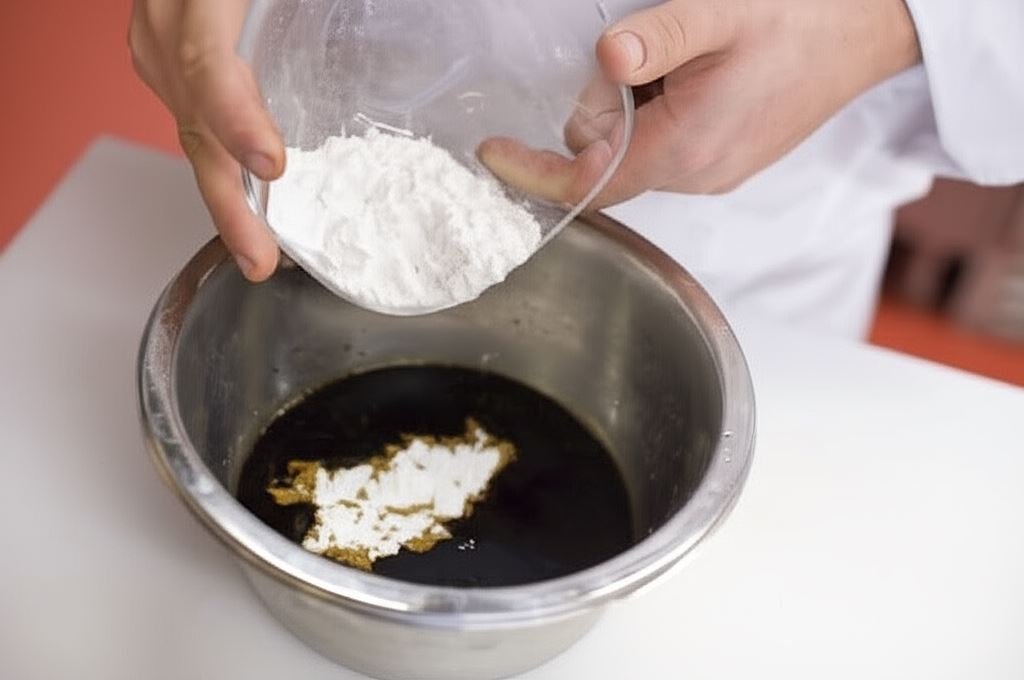 Ocet, sherry, 3 łyżki sosu sojowego, cukier, 3 łyżki wody oraz drugą porcję mąki wymieszaj w miseczce i odłóż na bok.