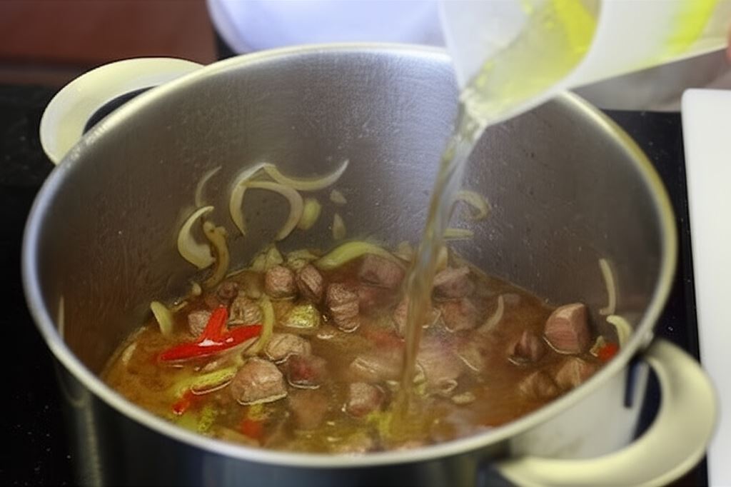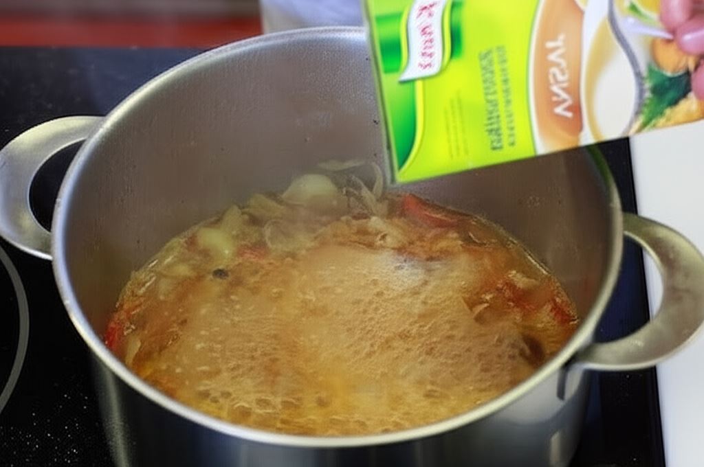 Rozpuść kostki Rosołu wołowego Knorr w 1 litrze wrzącej wody, potem duś przez 20 minut.
