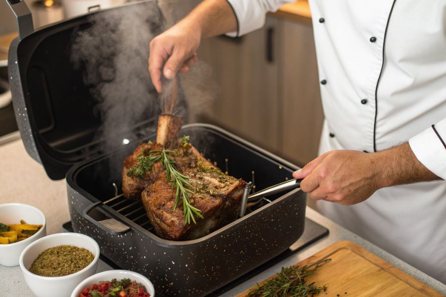 • Możliwość przygotowania większych kawałków baraniny bez ryzyka, że wnętrze pozostanie surowe
