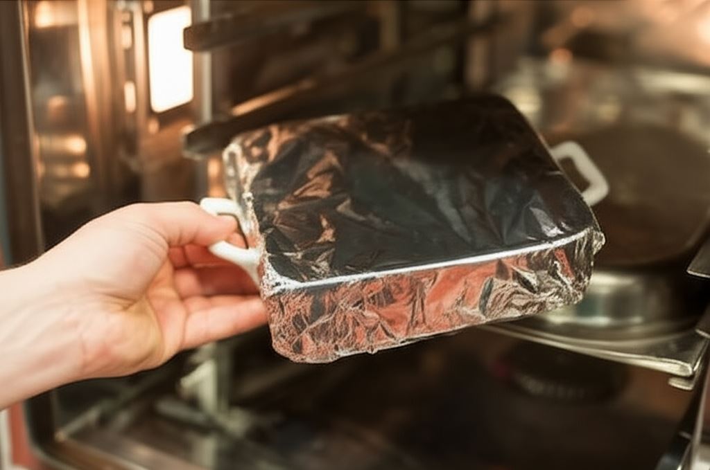 Lasagne umieść w rozgrzanym do 200°C piekarniku na 30 minut, następnie zdejmij folię i piecz jeszcze 10 minut, aby ser na wierzchu zapiekanki stał się chrupiący.