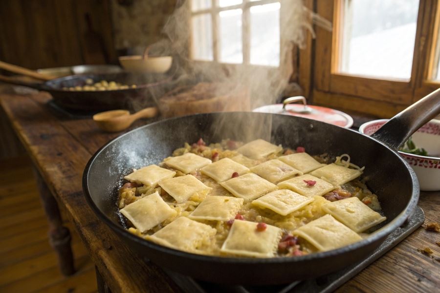 Łazanki stanowią doskonały przykład kulinarnej fuzji – włoska technika przygotowania makaronu połączona z lokalnymi składnikami stworzyła unikalne danie, które na stałe wpisało się w polski krajobraz kulinarny.
