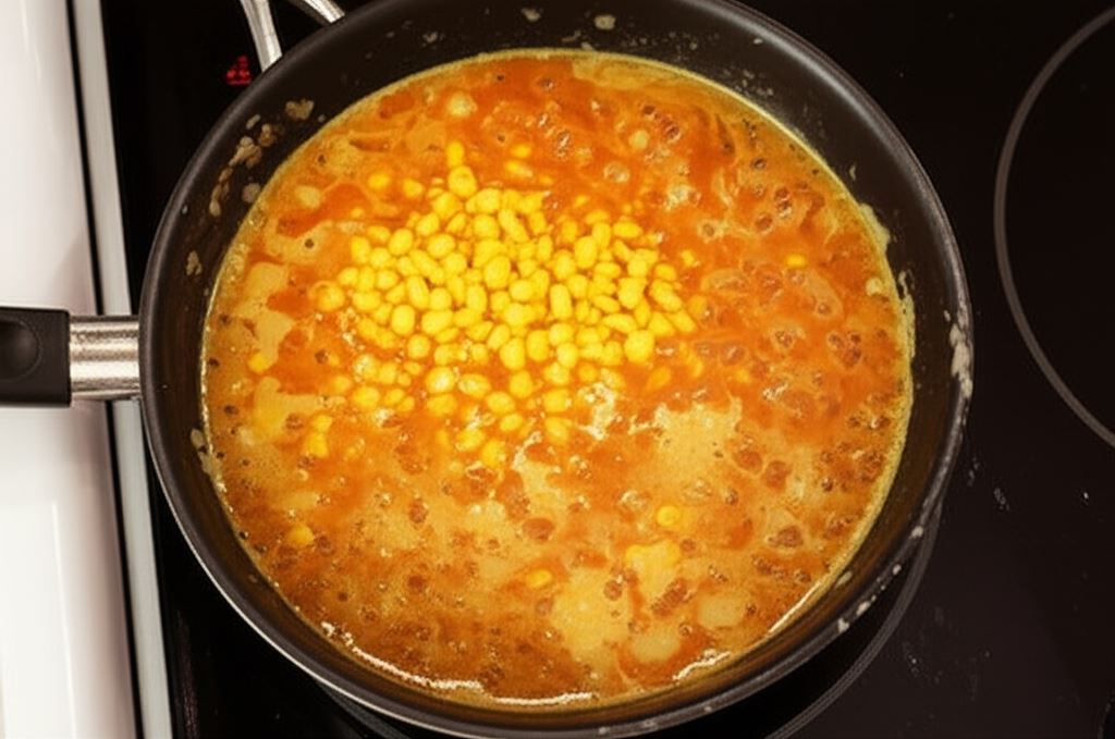 Wsyp kukurydzę. Gotuj pod pokrywką na niskim ogniu aż zmięknie.