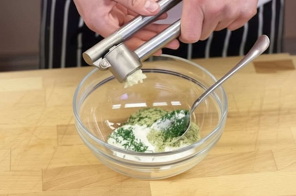 Sos sałatkowy Knorr połącz z jogurtem, czosnkiem przepuszczonym przez praskę i drobno posiekanym koperkiem.