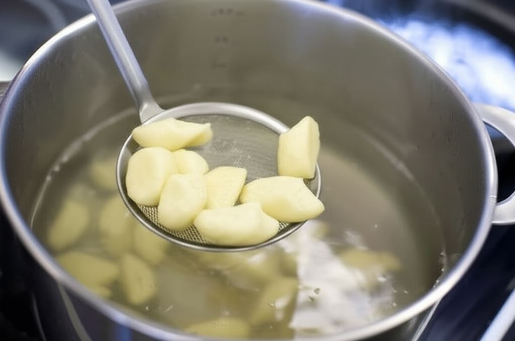 Paski ciasta potnij nożem na romby. Potem gotuj w wodzie przez 2-3 minuty.