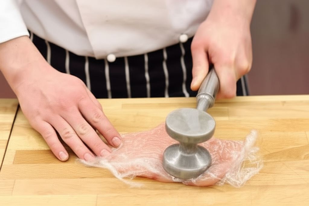 Mięso oczyść z błonek i delikatnie rozbij tłuczkiem, by miało grubość nie większą niż 2 cm.
