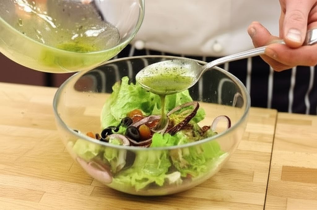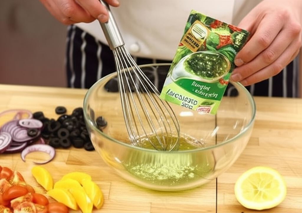 Wymieszaj sos sałatkowy Knorr z oliwą, sokiem z cytryny i wodą.