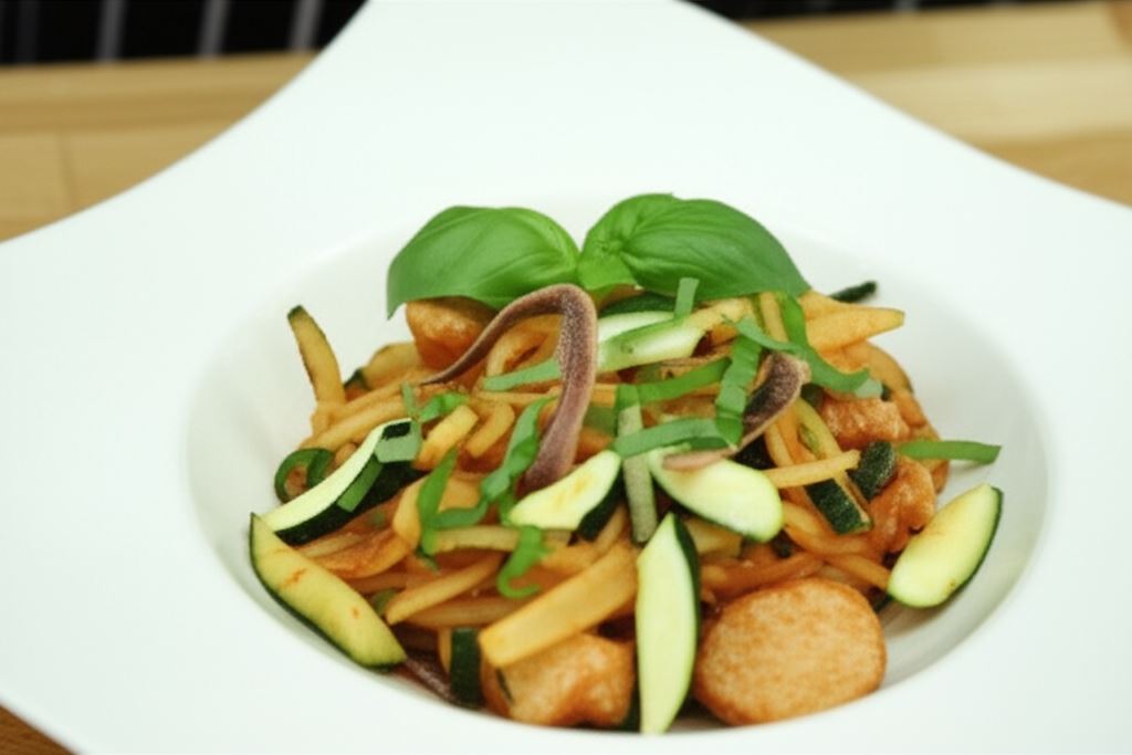 Delikatne linguini z dodatkiem soczystej cukinii, aromatycznych anchois i świeżej ryby to prawdziwa uczta dla podniebienia. Ten klasyczny sycylijski przepis przeniesie Cię wprost na słoneczne wybrzeże Morza Śródziemnego. Makaron al dente w połączeniu z lekkimi, morskimi dodatkami tworzy harmonijną kompozycję smaków, która zachwyci nawet najbardziej wymagających smakoszy.
