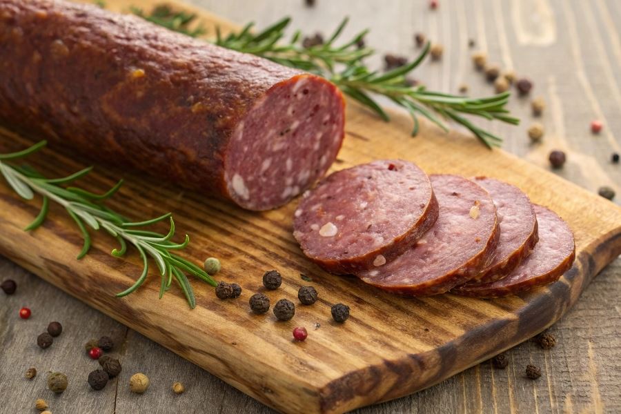 - Słonina (10-15%) – nadaje charakterystyczną strukturę i aromat