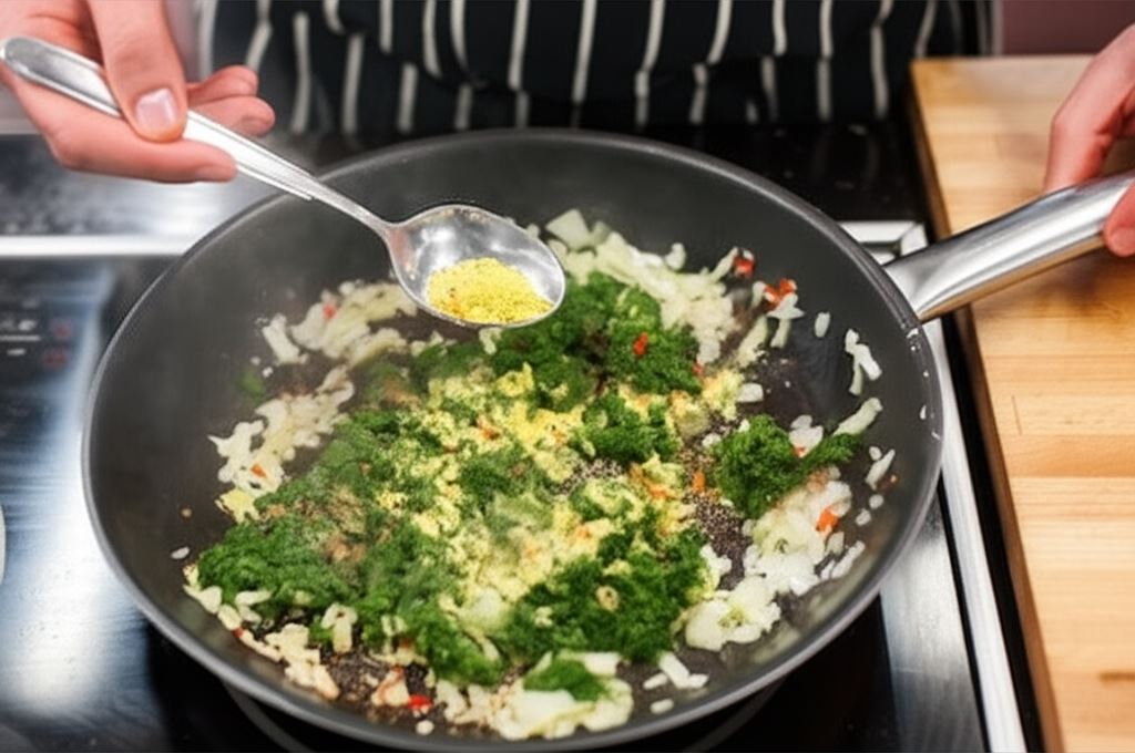Na rozgrzanym tłuszczu zrumień posiekany czosnek, chilli i cebulę, wsyp rozmrożony i odciśnięty z nadmiaru wody szpinak. Wszystko smaż moment, następnie przypraw do smaku łyżką przyprawy uniwersalnej Knorr oraz gałką muszkatołową. Szpinak przestudź, połącz z serkiem ricotta oraz pokrojonymi w kostkę suszonymi pomidorami.