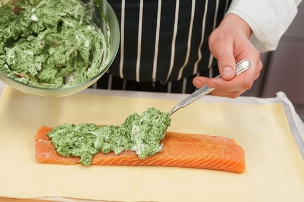 Łosoś w cieście francuskim ze szpinakiem – elegancja na talerzu