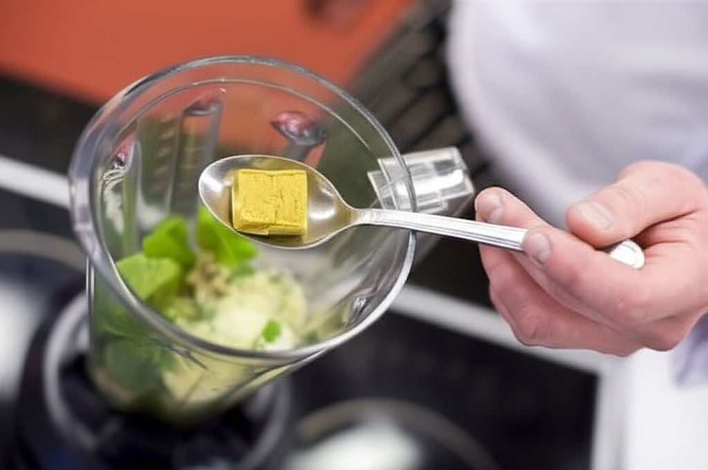 Do ziół wsyp orzeszki pinii, oliwę z oliwek i parmezan. Na koniec dodaj kostkę rosołową Knorr i wszystko dokładnie zmiksuj.
