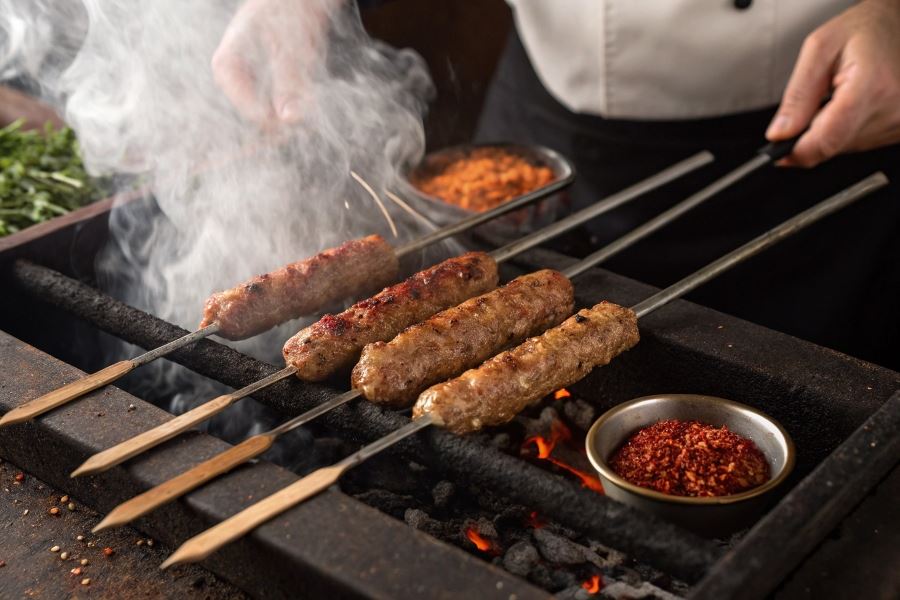 Serwowanie: Tradycyjnie podaje się je na cienkim lawaszu z dodatkiem świeżych ziół (kolendra, mięta), krojonych warzyw (pomidory, cebula czerwona) oraz sosów – jogurtowego z czosnkiem lub ostrego sosu pomidorowego. Doskonałym dodatkiem jest również grillowana papryka i bakłażan.