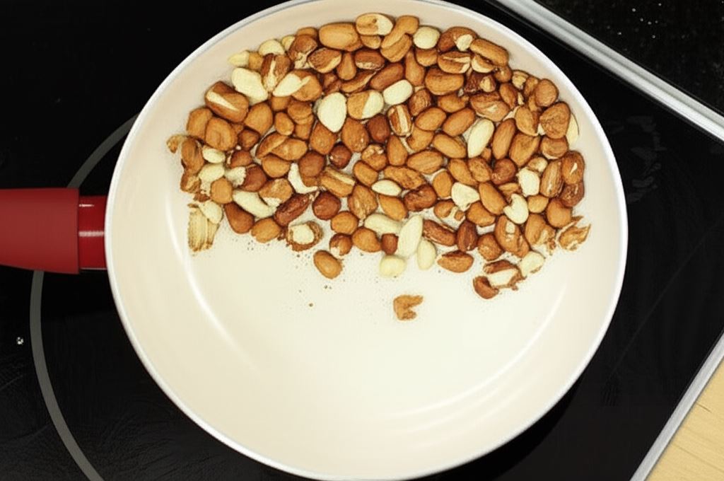 Orzechy ziemne upraż w piekarniku albo na patelni i delikatnie je rozdrobnij.