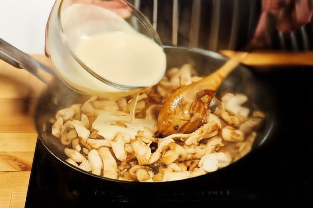 Sekret tego dania tkwi w połączeniu delikatnego bulionu warzywnego Knorr z mlekiem i odrobiną musztardy, co nadaje sosowi aksamitną konsystencję i wyrazisty smak. Złociste kawałki kurczaka doskonale komponują się z pieczarkami, tworząc harmonijne połączenie, które najlepiej smakuje posypane świeżą natką pietruszki.