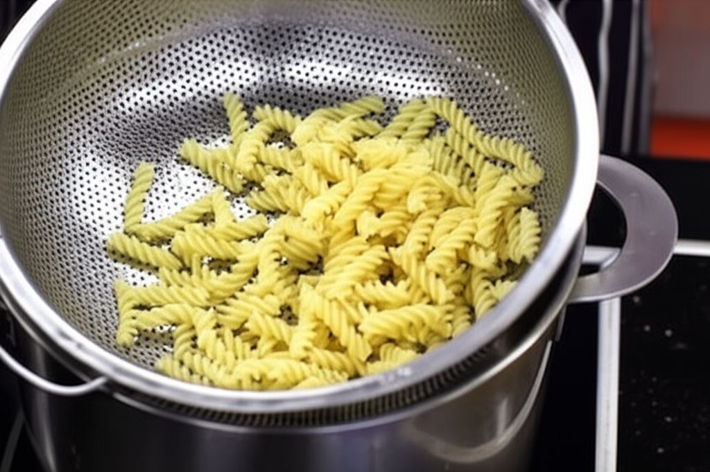 Makaron ugotuj al dente w osolonej wodzie, odcedź i skrop oliwą.