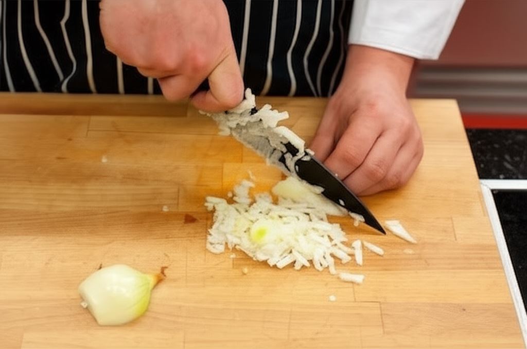 Cebulę posiekaj w kostkę i zrumień na oleju. Makaron ugotuj.