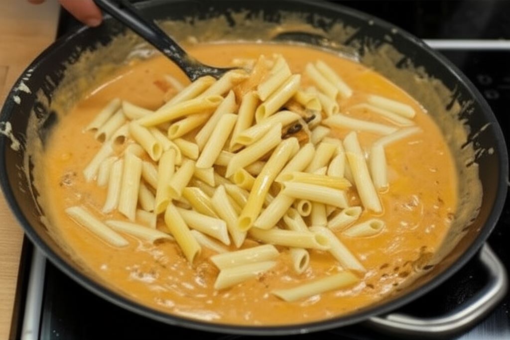 Sekret tego dania tkwi w połączeniu pomidorów z puszki ze śmietaną, która nadaje sosowi kremowej konsystencji i łagodzi kwasowość pomidorów. Makaron typu penne idealnie współgra z sosem, ponieważ jego rurkowaty kształt doskonale zatrzymuje aromatyczną polewę.