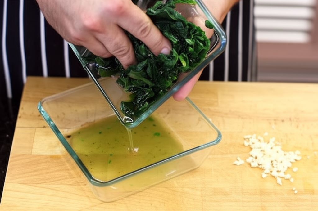 Szpinak dokładnie opłucz. W przypadku mrożonego, odtaj go i wyciśnij wodę.