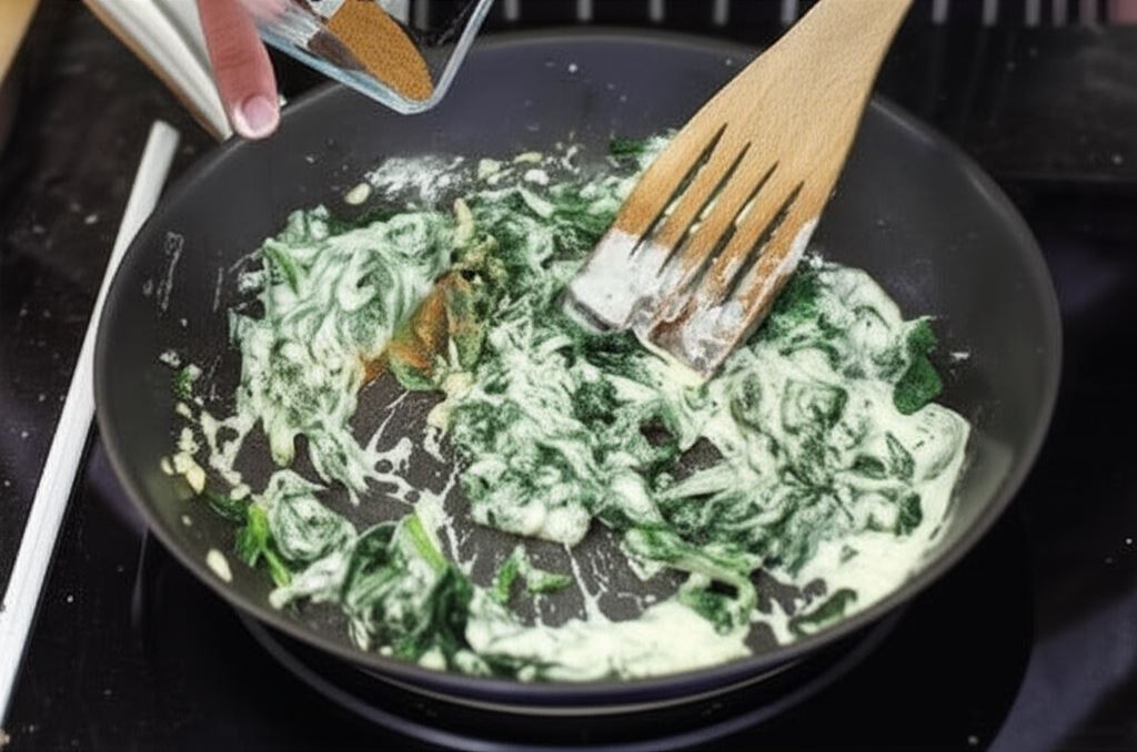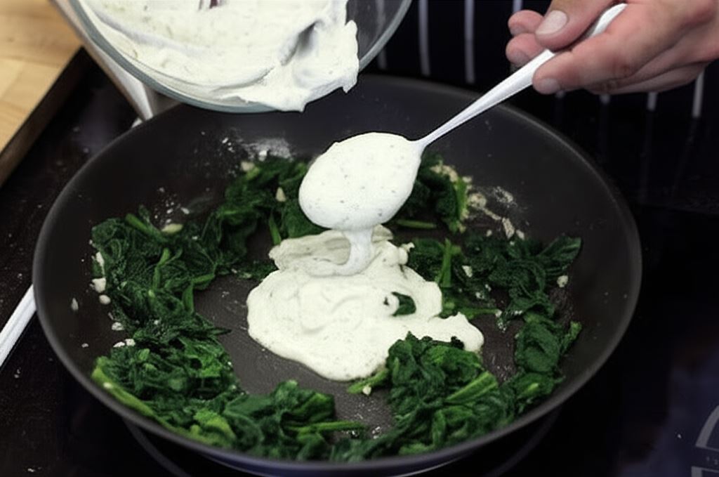 Połącz Fix Knorr z śmietanką i dodaj do szpinaku. Starannie zamieszaj.