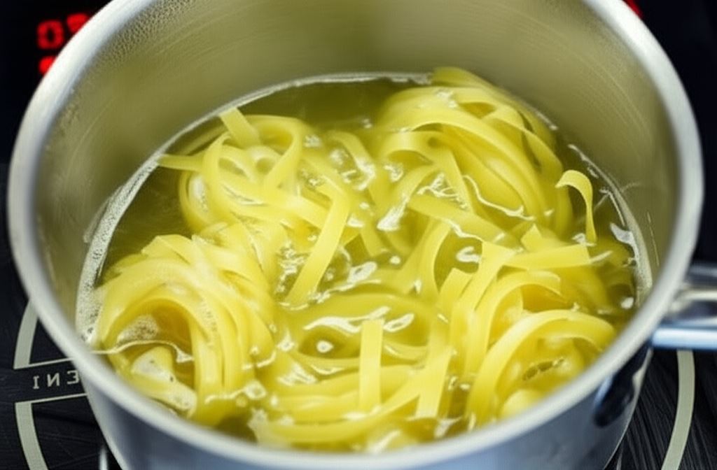 Makaron ugotuj na półtwardo w delikatnie posolonej wodzie z dodatkiem oliwy.