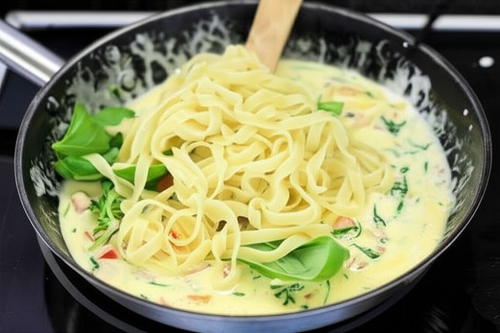 Makaron ze szpinakiem i bazylią – kremowa uczta dla podniebienia