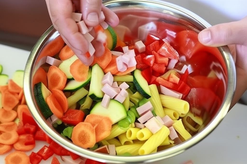 Odkryj niezwykłą kompozycję smaków w tej prostej, a jednocześnie wyrafinowanej sałatce makaronowej z bobem. Soczyste warzywa, delikatny makaron i aromatyczna szynka tworzą harmonijne połączenie, które zachwyci każdego miłośnika lekkiej kuchni. Sos sałatkowy Knorr dopełnia całość, nadając potrawie wyrazisty charakter.