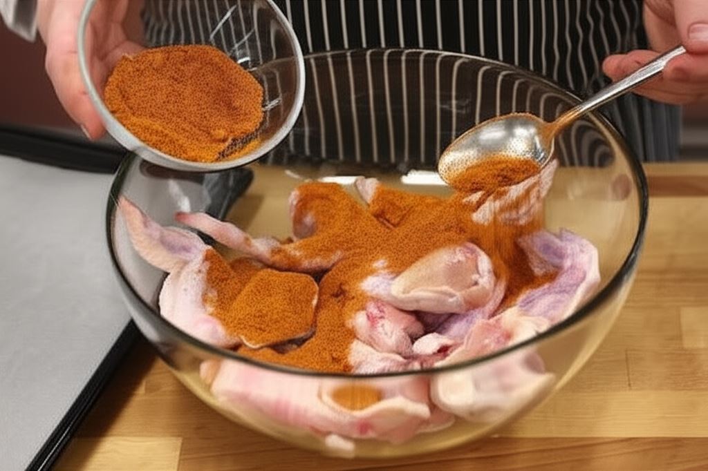 Skrzydełka posyp hojnie przyprawą Knorr, ułóż na blasze do pieczenia wyłożonej papierem i umieść w piekarniku rozgrzanym do 190°C na około 30-40 minut. Upieczone skrzydełka ostudź, oddziel mięso od kości, drobno posiekaj.