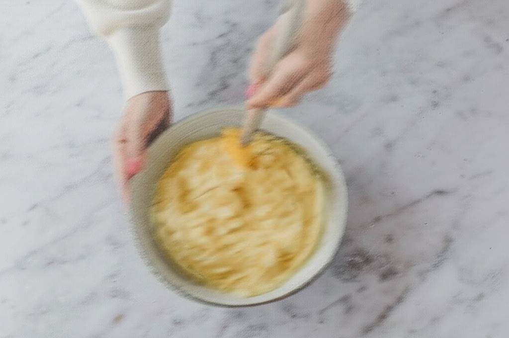 Odlewamy 1/2 szklanki mleka i rozpuszczamy w nim budyń oraz żółtka. Dokładnie mieszamy. Pozostałe mleko zagotowujemy z cukrem. Kiedy zaczyna kipieć, wlewamy rozmieszany budyń i ponownie mieszamy. Zdejmujemy z ognia i ostudzamy. Masło o temperaturze pokojowej ucieramy na puszystą masę. Dodajemy je stopniowo, łyżka po łyżce do budyniu, cały czas ubijając.