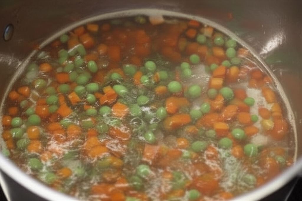 Warzywa gotuj przez 1 minutę. Po ugotowaniu odcedź i zachowaj 5 łyżek płynu.