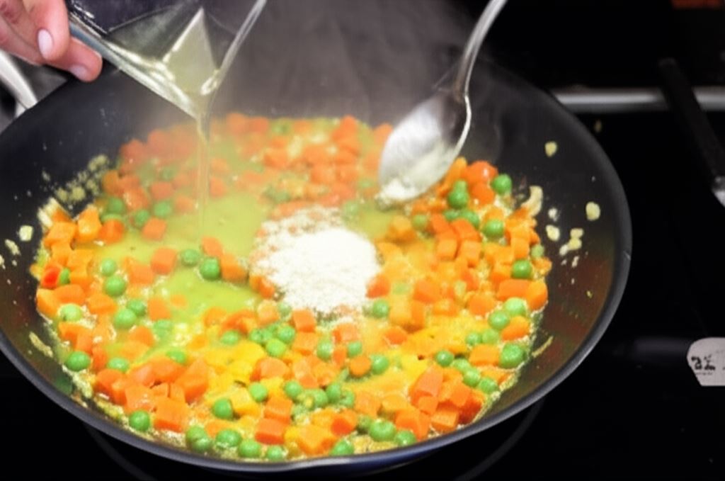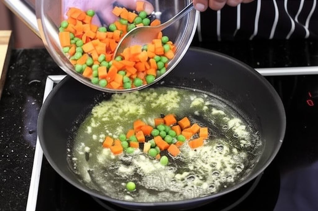 Gotuj warzywa przez 1 minutę. Po ugotowaniu odcedź i zachowaj 3-5 łyżek wody z gotowania.