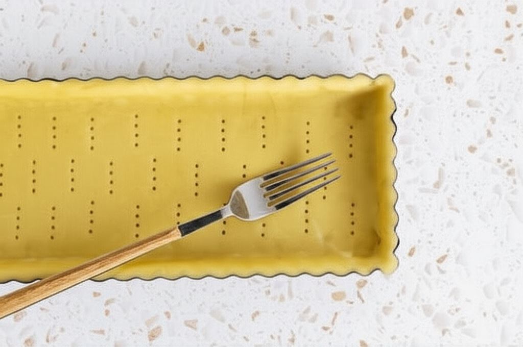 Ochłodzone ciasto rozwałkuj, po czym przenieś na prostokątną formę. Wyrównaj brzegi i ponakłuwaj spód widelcem w kilku miejscach. Umieść w piekarniku, rozgrzanym do 200 stopni, na około 15 minut (aż się zrumieni). Wyjmij po tym czasie i pozostaw do ostygnięcia.