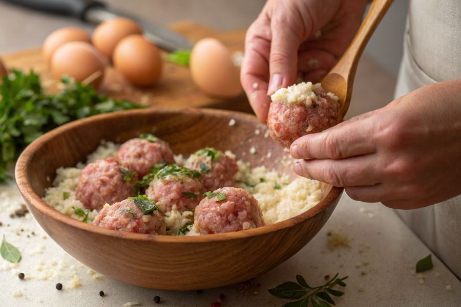 Wskazówka eksperta: Przed formowaniem klopsików zwilż dłonie zimną wodą. Zapobiega to przywieraniu masy mięsnej do rąk i ułatwia nadawanie idealnie okrągłego kształtu.